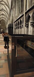 zde často k vidění, pro nás působící zvláštně: uprostřed kostelní lodi výtah pro vozíčkáře na záchod v podzemí