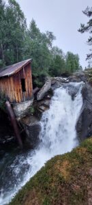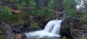 Moje auto na tom bylo čím dál hůř /netechnicky orientovaní mohou tento odstavec s klidem přeskočit/, předevčírem to vytáhlo tak 60 po rovině, do úplně mírného kopce tak 30, 40 na dvojku, větší kopec nepřipadal v úvahu, protože víc jak 2,5 tis. otáček z toho nešlo dostat. V tomto stavu (a cestou se zhoršujícím) jsem vyrazil 50 km do autorizovaného servisu Subaru v Heidalu – poté, co jsem tam musel dvakrát volat (poprvní neuměli anglicky) a co mi předtím týden neodpověděli na mail – ale po telefonátu mi zas dali termín hned druhý den ráno a naštěstí nebyl ani problém z volnem z práce. Delších 50 km, to nevím, jestli jsem někdy v autě zažil, krokem, každej kopeček problém, neustálej strach, jestli vůbec dojedu (zkuste jet do kopce, když vás motor nepustí přes 2 tis. otáček). A u toho myšlenky, že pokud mi to nespraví na počkání, zpátky jedu stopem – busy tam nejezdí a to auto zpátky do těch kopců rozhodně už nevyjede. Ale v servisu už to šlo ráz na ráz. O půl deváté jsem dojel, auto šlo hned na diagnostiku a na zvedák, trochu se v tom projeli a za hodinu mi hlásil nejkrásnější větu, co od mechanika slyšet lze: tak už víme, co tomu je. (No dobře, druhá nejkrásnější, ta první je: je to jen drobnost a nebude to ani stát moc – tu ale neznám.) Katalyzátor odešlej a dokonce mají nějakej jetej po ruce a po poledni by ho měli dovézt. Tak jsem strávil půl dne u místní krásné řeky a před třetí telefon, že už je to hotový a funkční. Super! Ale přeci jen ne tolik radosti – ještě účet… V duchu jsem si spočítal, kolik by to mohlo stát, co stojí katík u nás – no a bylo to ještě pod spodní hranicí mých odhadů! 5,5 tis. korun, sice norskejch, ale i tak dobrý. Takže až do další závady jsem nyní pojízdnej! Toho jsem využil při cestě zpátky na výlet v horách, z něj přidávám nějaký fotky.